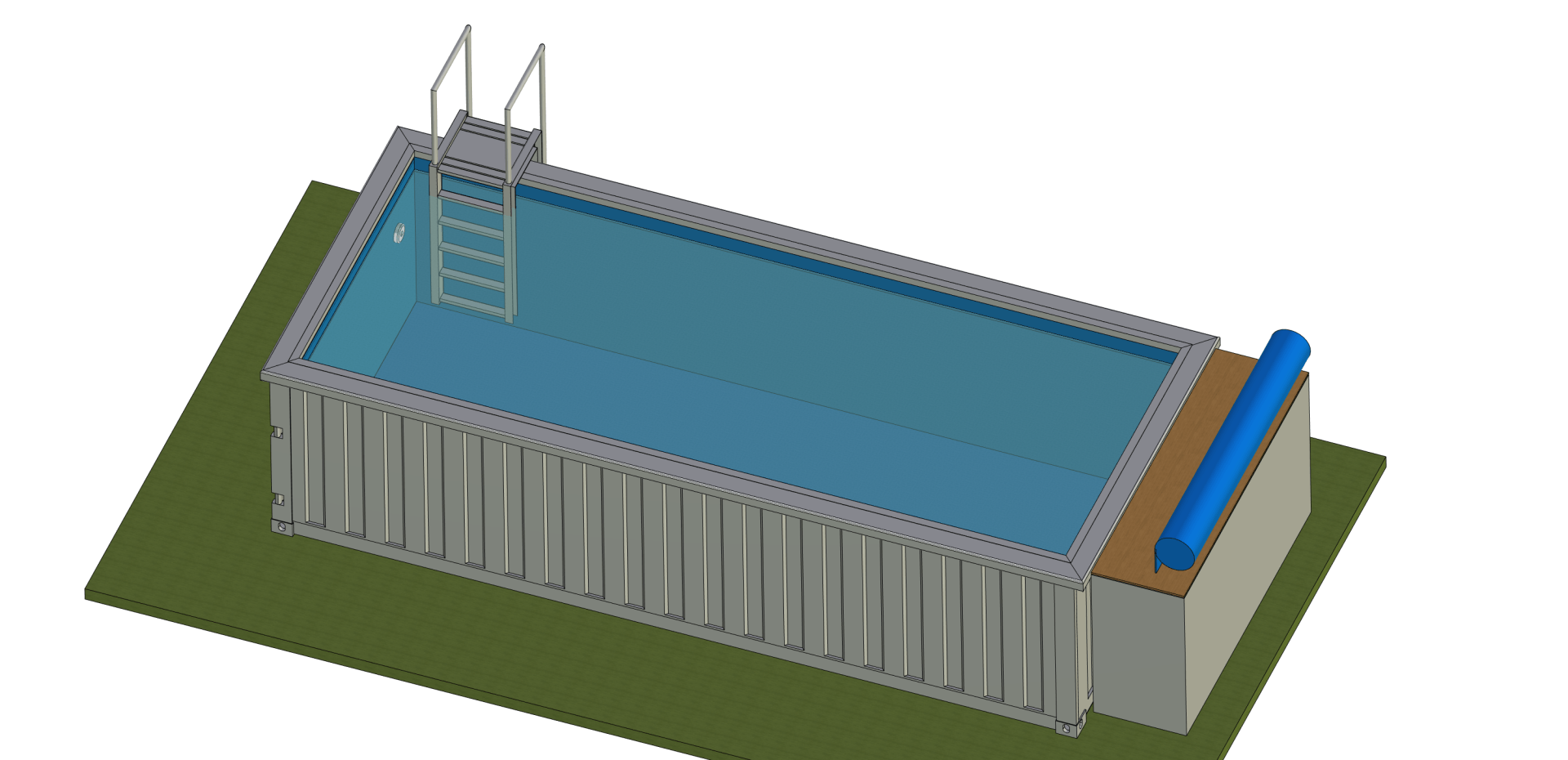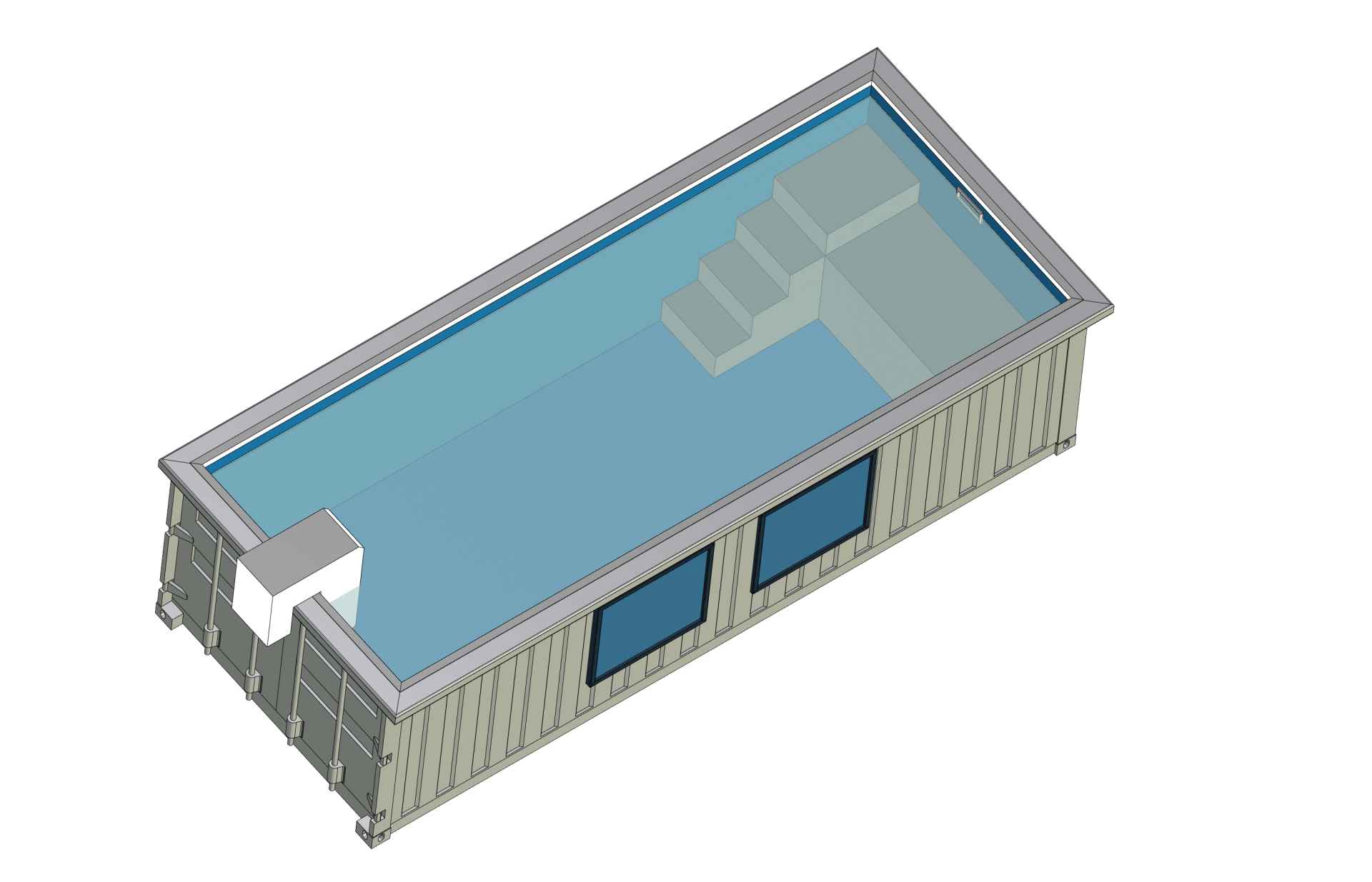 Wir verwenden gebrauchte Seecontainer als Basis. Meistens haben diese nur eine Reise auf dem Schiff hinter sich. Die Container werden in unserer Werkstatt aufgetrennt und entsprechend modifiziert, um die entsprechenden Anforderungen zu erfüllen. Von uns gefertige Pools auf Containerbasis gibt es in den Längen 6m und 12m, die Breite beträgt 2,6m. Die Wassertiefe können wir individuell nach Ihren Wünschen festlegen. Auch können wir Stufen oder unterschiedlich hohe Bereiche einbringen. Die Pools sind komplett gedämmt (Wände und Boden), um Wärmeverluste im Betrieb zu minimieren und die Heizkosten (falls beheizt wird) möglichst niedrig zu halten. Abschließend wird eine hochwertige Folienauskleidung als Abdichtung eingebracht.